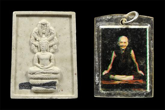 พระสมเด็จเนื้อดินเผา รุ่นสมโภชพระบรมธาตุเจดีย์ นครศรีธรรมราช ปี39 +หลวงพ่อปาน ขึไก่ ปี48 กล่องเดิม |
