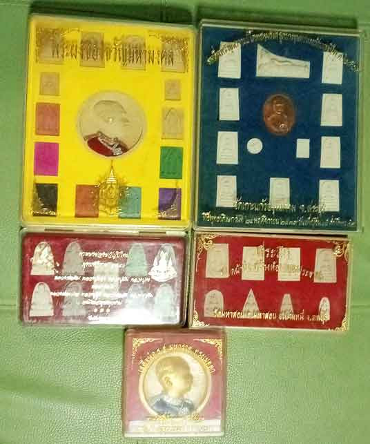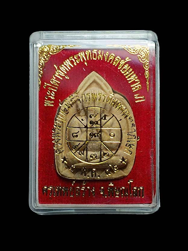 พระปิดตาชุดพระพุทธมงคลชัยมหาลาภ เนื้อผงฝังตระกรุดมหาจักรพรรดิ ปี พ.ศ.2542 จ.พิษณุโลก พระครูเทพย์สร้าง หลวงปู่หมุน ฐิตสีโล พระอาจารย์ตั้ว วัดซับลำไย ปลุกเสก สวย พร้อมกล่องเดิม |