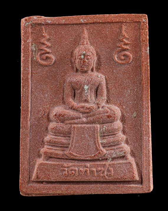 วัดใจแดงเคาะแรก พระคำข้าวหลวงพ่อฤาษีลิงดำ มีเกศา ด้านหลังขอบล่างมีรอยแมลงแทะตามภาพครับ |