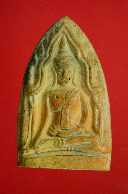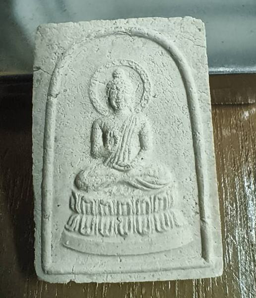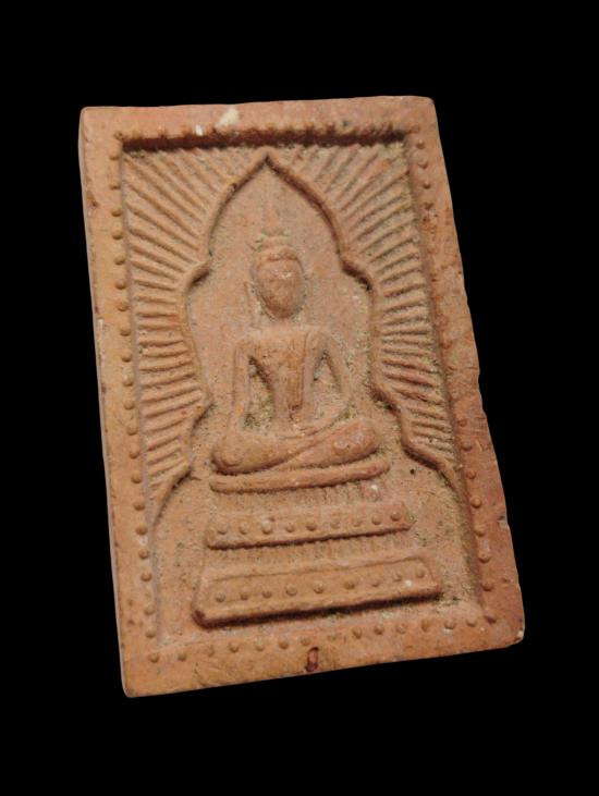 A6347.พระเนื้อดิน พิมพ์พระพุทธข้างอุ หลังยันต์ ไม่ทราบที่ เคาะเดียวเเดง |