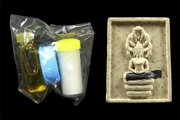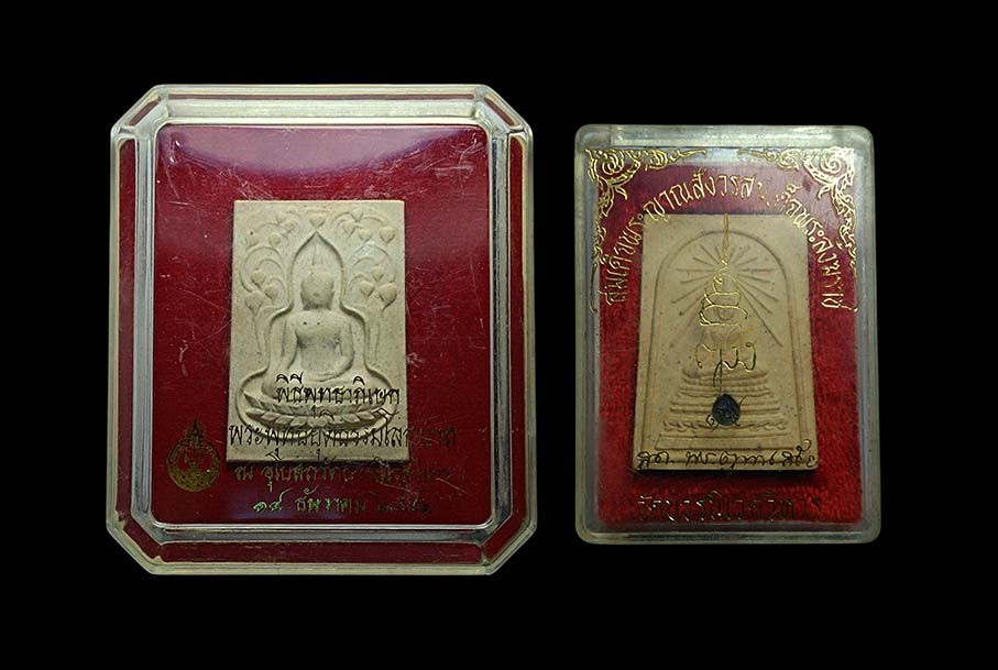 พระปิดตาชุดพระพุทธมงคลชัยมหาลาภ เนื้อผงฝังตระกรุดมหาจักรพรรดิ ปี พ.ศ.2542 จ.พิษณุโลก พระครูเทพย์สร้าง หลวงปู่หมุน ฐิตสีโล พระอาจารย์ตั้ว วัดซับลำไย ปลุกเสก สวย พร้อมกล่องเดิม |
