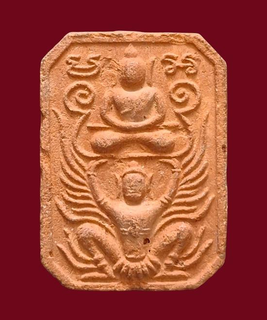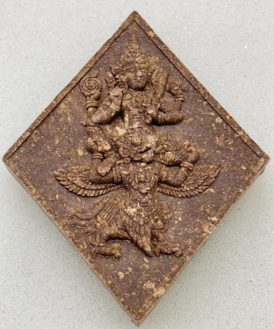 พระผงนารายณ์ทรงครุฑมหาจักรพรรดิ วัดหน้าพระเมรุ อยุธยา เนื้อผงว่าน ด้านหลังฝังคันฉ่องและตะกรุด 4 ดอก |