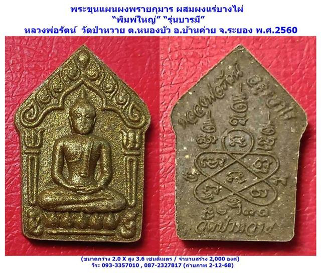 พระขุนแผนผงพรายกุมาร ผสมผงแร่บางไผ่ พิมพ์ใหญ่ รุ่นบารมี หลวงพ่อรัตน์ วัดป่าหวาย ต.หนองบัว อ.บ้านค่าย จ.ระยอง พ.ศ.2560 หลวงพ่อสมศักดิ์ วัดนครอินทร์ จ.นนทบุรี สร้างถวาย