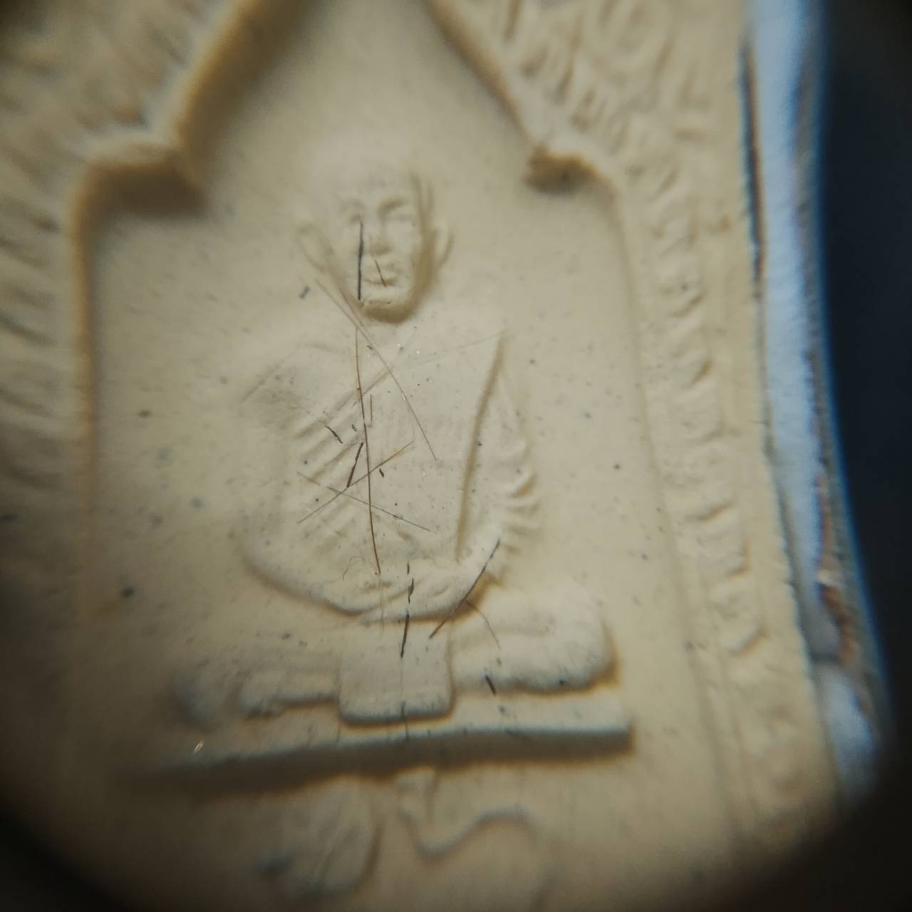 ลพ.มี วัดมารวิชัย อยุธยา รูปเหมือนเนื้อผงลายไทย รุ่นลาภผลพูนทวี ปี๓๖ ฝังตะกรุด