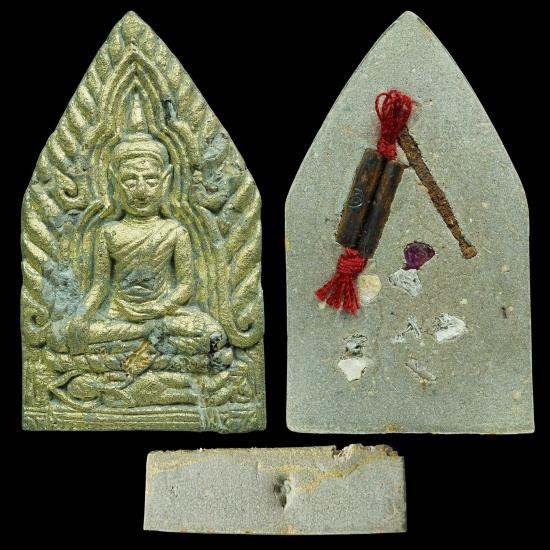 พระผงซุ้มใบโพธิ์หลังยันต์ห้า รุ่น เสาร์ห้ามหามงคลทอง 100 ปี- หลวงปู่บุดดา ถาวโร วัดกลางชูศรีฯ จ.สิงห์บุรี สวยพร้อมกล่องเดิมครับ ( 3 องค์ ) -4