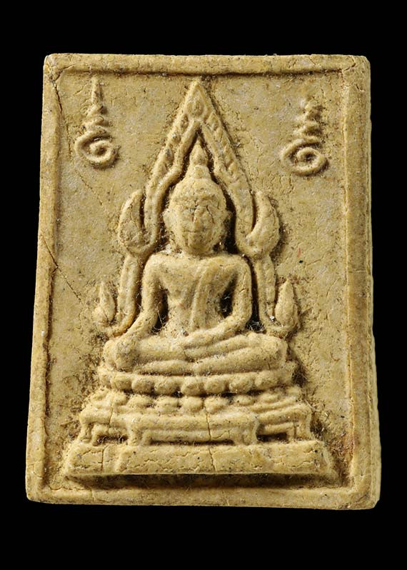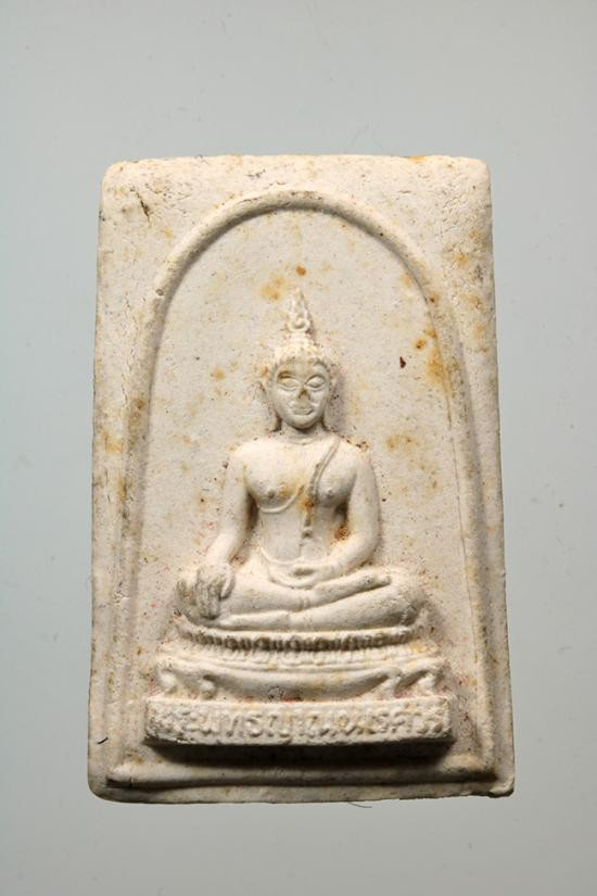 ลพ.มี วัดมารวิชัย อยุธยา รูปเหมือนเนื้อผงลายไทย รุ่นลาภผลพูนทวี ปี๓๖ ฝังตะกรุด |