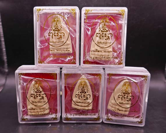 แบ่งปัน พระผงขุนแผน รุ่นเจ้าสัวเฮงเฮงรวยรวย ครูบากฤษณะ อินทฺวัณโณ ปี 2561 เนื้อผงพุทธคุณสีขาว ฝังพลอยแดง ตะกรุดเงินคู่ ด้านหลังฝังจีวรผงตะไบ ชุด 5 องค์ ประกันแท้ |