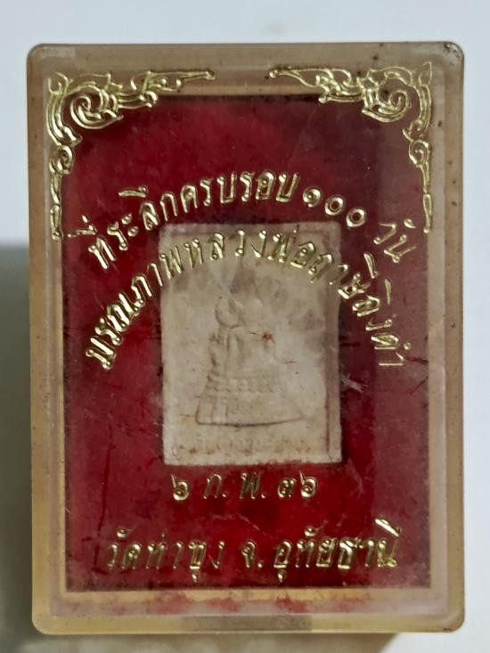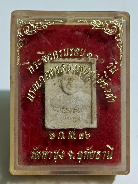 พระคำข้าวรุ่นพิเศษ หลวงพ่อฤาษีลิงดำ (พระราชพรหมยาน) วัดท่าซุง พิมพ์รูปเหมือนนั่งตั่ง หลังยันต์เกราะเพชร อุดผงคำข้าว |