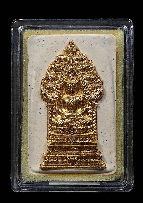 พระนิรันตรายสองกษัตริย์ มหาพุทธานุภาพแห่งแผ่นดิน เนื้อผง (สีครีม) หน้าปัดทอง หลังปัดทอง (พระปรมาภิไธยย่อสองกษัตริย์) ขนาดสูง 3.2 เซน ปี2552 เลขสวย 790 พร้อมกล่องเดิมครับ |