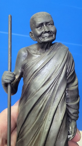 พระบูชารูปหล่อเหมือน หลวงปู่แหวน สุจิณโณ วัดดอยแม่ปั๋ง จ.เชียงใหม่ พิมพ์ยืนถือไม้เท้า |