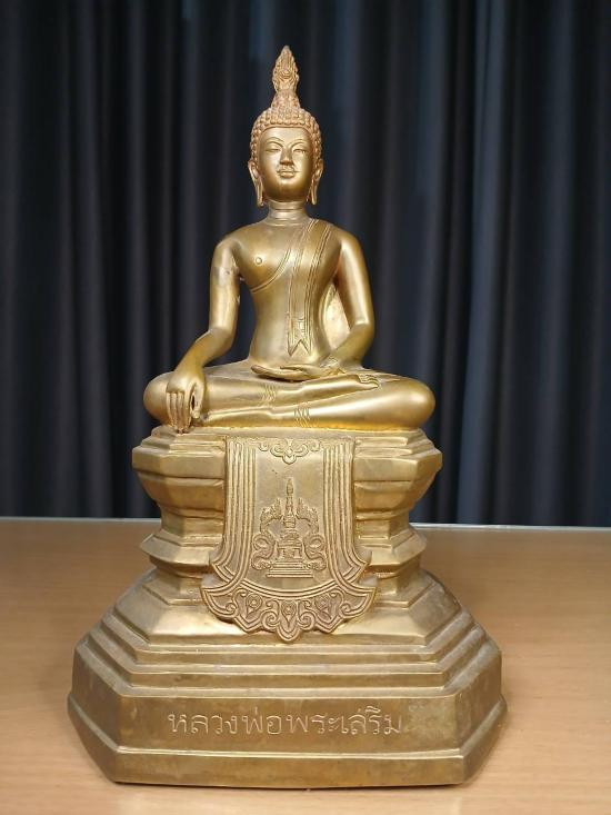 พระบูชาหลวงพ่อพระเสริม รุ่นสามบารมี วัดโพธิ์ชัย หนองคาย หน้าตัก 5 นิ้ว เนื้อทองเหลืองผิวหิ้ง หมายเลข 2730 |
