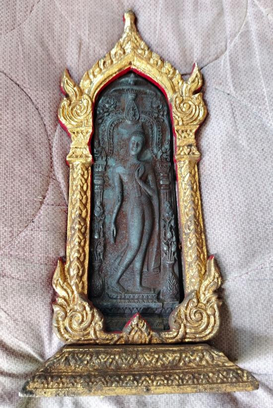 พระบูชาศิลป์ะปางเชียงแสนสิงห์ 1 แผ่นป้ายลายสือไทย พ.ศ.2533 ห น้าตัก 6 นิ้ว เนื้อโลหะผิวหิ้ง !! |
