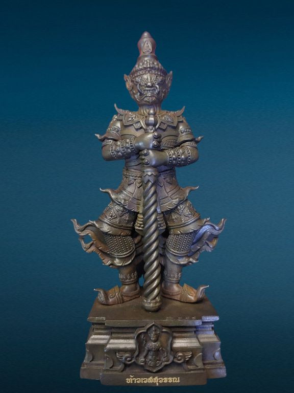 ท่านท้าวเวสสุวรรณประทับยืนบนพระราหู หลวงพ่อฟู วัดบางสมัคร เนื้อโลหะรมดำมันปู ผิวหิ้ง สูงรวมฐาน 14 นิ้ว สภาพศิลป์สวย เข้มขลัง !! |
