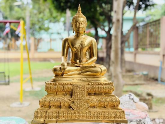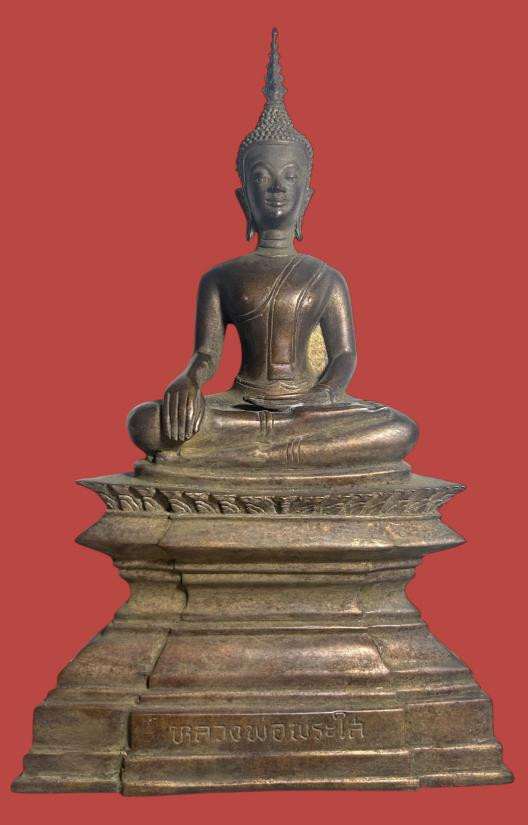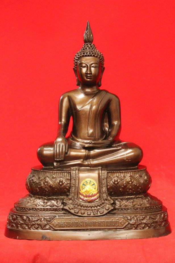พระบูชาพุทธะเชียงแสนหน้าตัก 5 นิ้วสำนักฝึกจิตนิมิตธรรมของนครราชสีมาปี 2524 เนื้อโลหะ สูง 9 นิ้วจัดไปคับ |