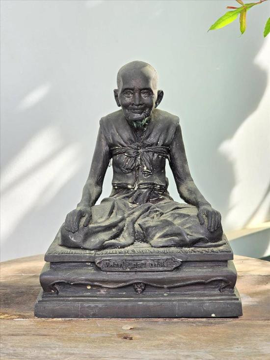 พระบูชาหลวงปู่บุญ วัดบ้านนาจังหวัดระยอง ขนาดหน้าตัก 5 นิ้วใต้ฐานอุดเหรียญและตะกรุด |