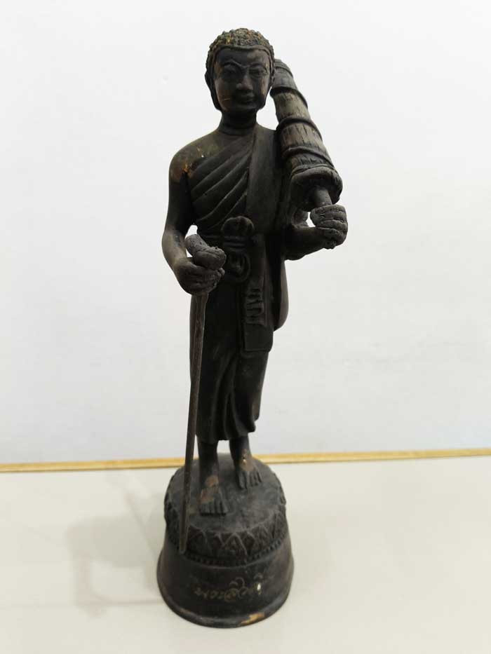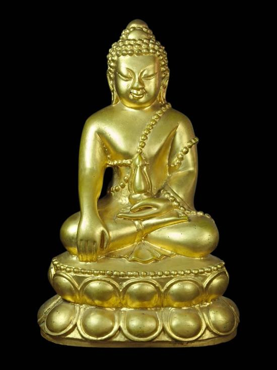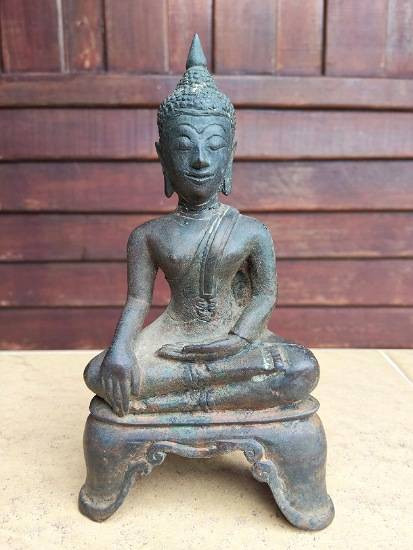 พระพุทธรูปสมัยรัตนโกสินทร์ เนื้อทองเหลืองลงรักปิดทอง หน้าตัก 1.7 นึ้ว กรุงเทพ สภาพชำรุดปลายพระเกศ |