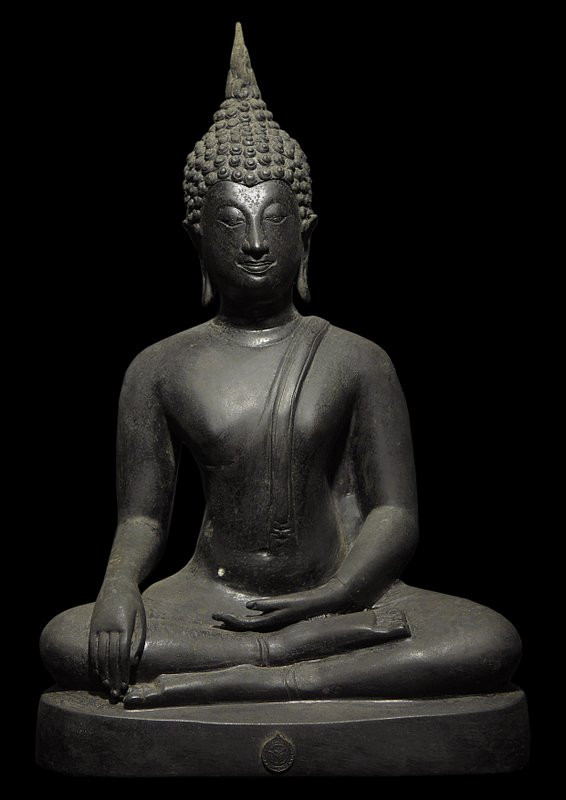 พระบูชาพุทธศิลป์ปางสุโขทัยนั่งมารวิชัย รุ่น 700 ปี ลายสือไทย หลวงพ่อเกษม เขมโก สุสานไตรลักษณ์ จ.ลำปาง พ.ศ.2526 หน้าตัก 9 นิ้ว ตอกโค๊ต เนื้อโลหะรมมันปูผิวแห้งหิ้ง พร้อมบัตรพระแท้การันตีพระ !! |