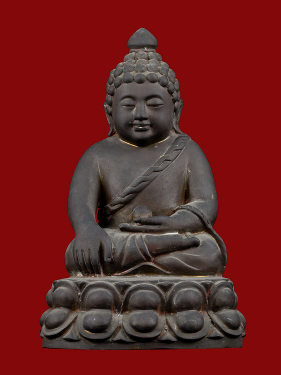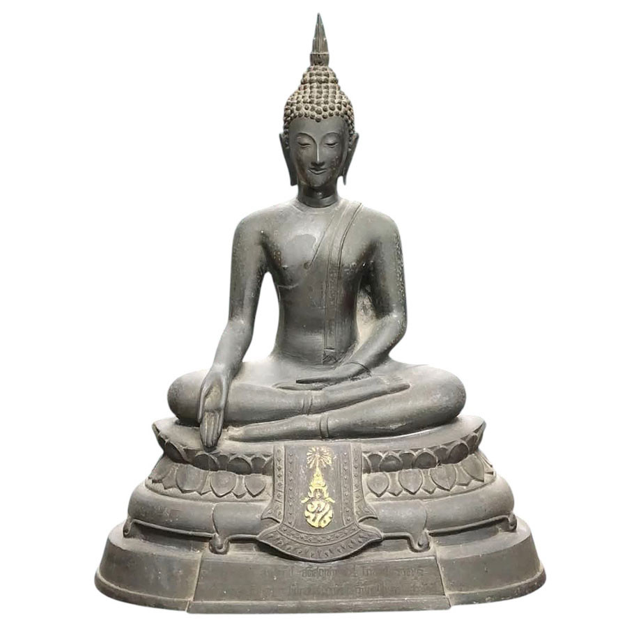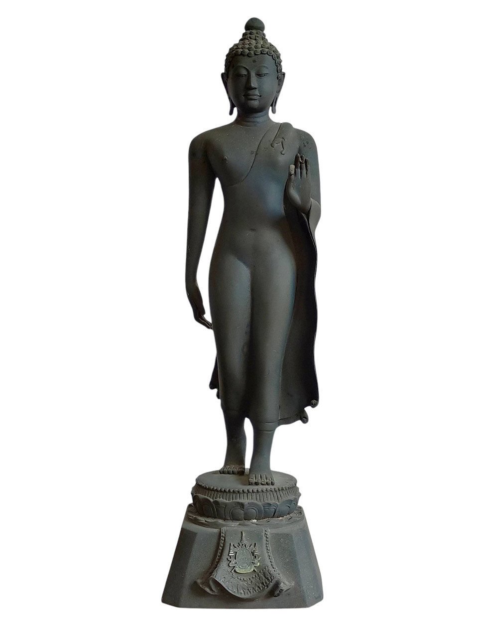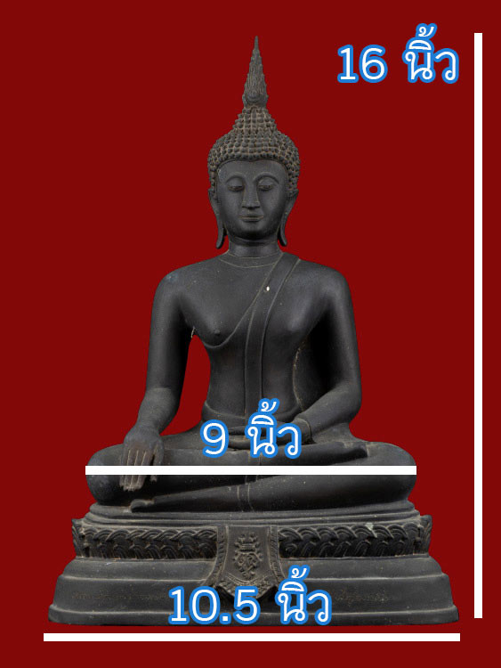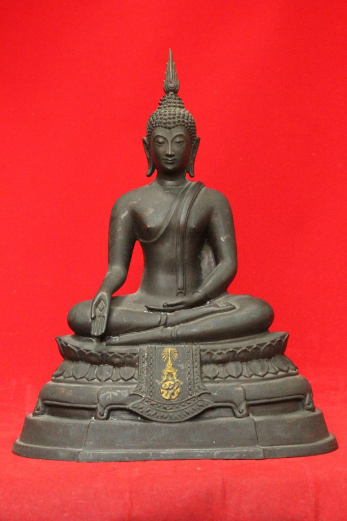 พระพุทธประทานพร หลวงพ่อแพ วัดพิกุลทอง จ.สิงห์บุรี พ.ศ.2512 หน้าตัก 9 นิ้ว เนื้อโลหะรมดำมันปูผิวหิ้ง หล่อดินไทยสีดำ พร้อมบัตรพระแท้การันตีพระ !! |