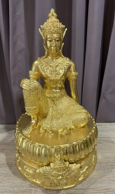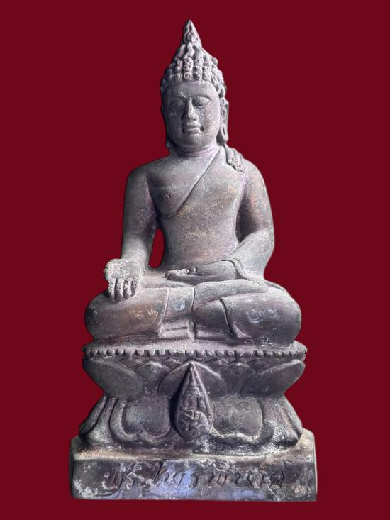 พระพุทธพนมรุ้ง พิธีมหาพุทธาภิเษก พ.ศ.2532 ความสูงรวมฐาน 10 น ิ้ว เนื้อโลหะรมมันปูผิวหิ้งสภาพสวย !! |