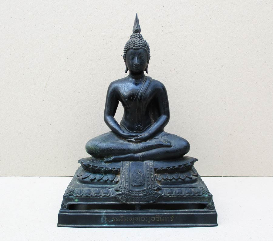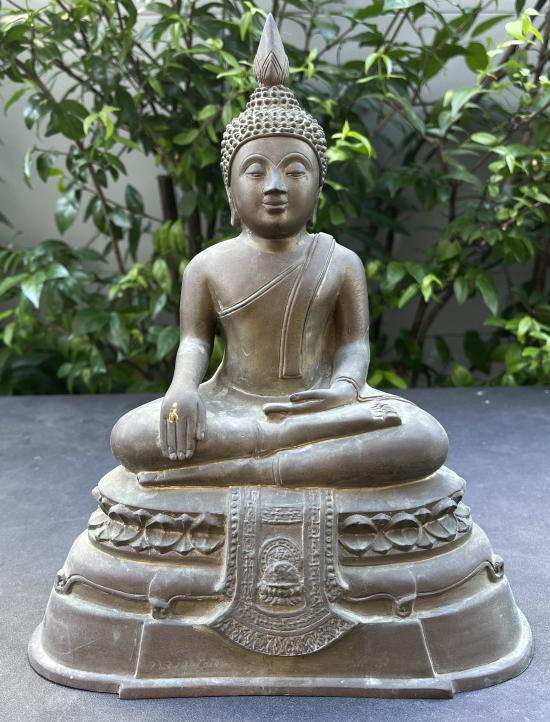 พระบูชาพิมพ์เชียงแสน สำนักพุทธรังษี หน้าตัก4.5 นิ้ว ฐานล่าง5นิ้ว สูง8.5นิ้ว อุดผงมวลสาร มีตรายางประทับ สวยครับผิวหิ้ง |