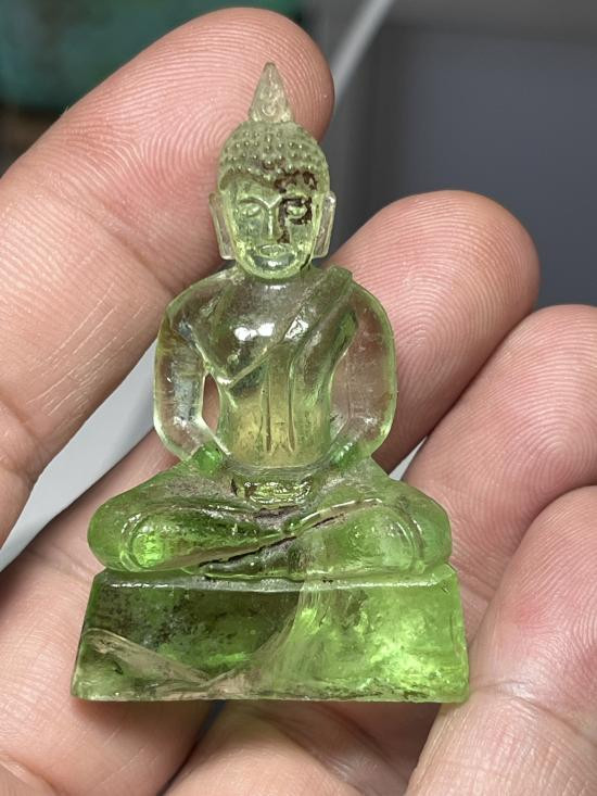 วัดใจเคาะแรก พระบูชาเนื้อแก้วเขียวไม่ทราบที่เก่ามีอายุ ขนาดหน้าตัก 3 เซนติเมตรสูงถึงปลายเกศ 5.5 เซนติเมตรพระบ้านบ้านสวยตามภาพครับ |