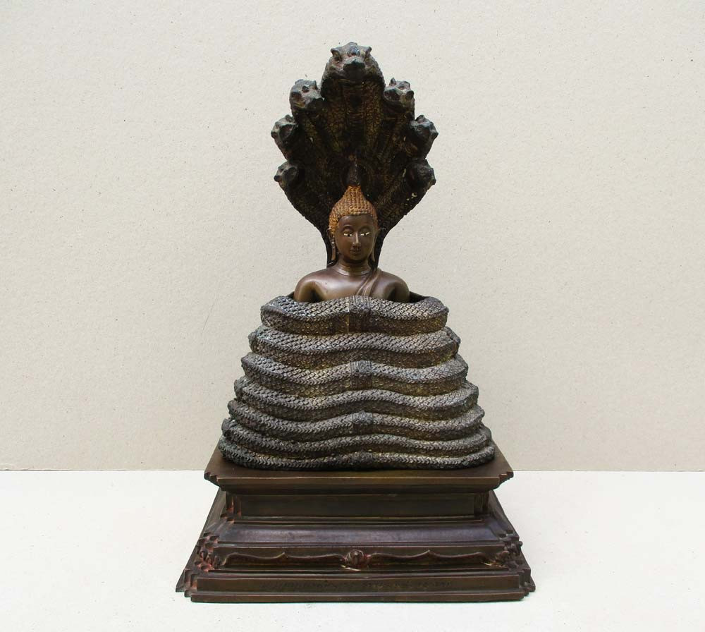 พระบูชาปางนาคปรก พระมหานาคชินะวร วรานุสรณ์มงกุฏราช กรมการแพทย์มหารบก วังพญาไท พ.ศ.2532 หน้าตัก 5 นิ้ว ( แยกออกได้ 3 ชิ้น ) สภาพพุทธศิลป์สวยงดงาม !! |