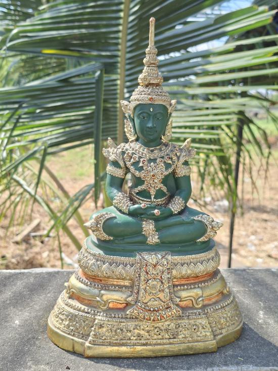 พระแก้วมรกต ปี พ.ศ.2500 พระพุทธมหามณีรัตนปฏิมากร หน้าตัก 5 นิ้ว 2ถอด (ชฎาเกศถอดได้) เนื้อเรซิน (สีเขียวพระอินทร์) เคลือบทอง สุดสวยสมบรูณ์ หายากค่ะ! |