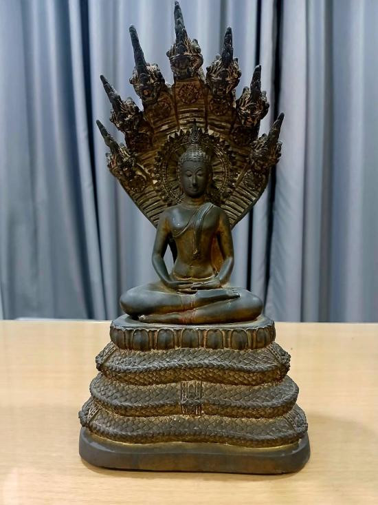 พระบูชา ปางนาคปรก 7 เศียร ( พระประจำวันเสาร์ ) ฐานสูง เนื้อโลหะ ขนาดหน้าตัก 5 นิ้ว ฐานกว้าง 8 นิ้ว สูง 13 นิ้ว |