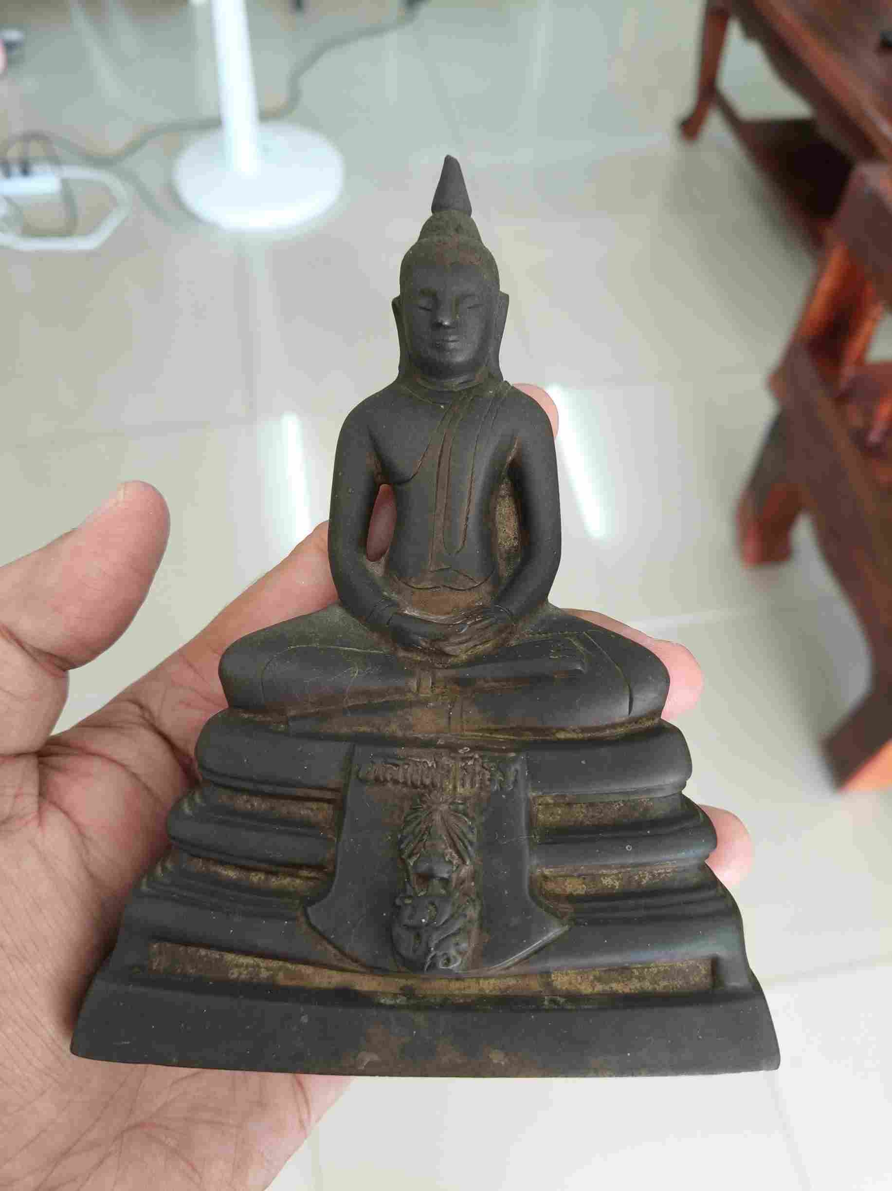 พระบูชาหลวงพ่อดำ ปางมารวิชัยทรงเครื่องจีวรลายดอก หน้าตัก 5 นิ้ว วัดศรีสุทธาราม สมุทรสาคร ปี29 ผิวหิ้งเดิมๆ สวย ฐาน 12 นักษัตริ์ |