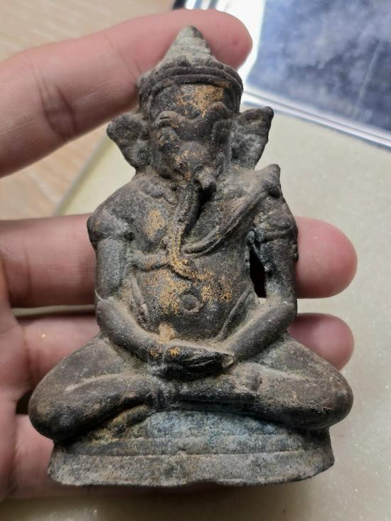 พระบูชาพระพิคเนศ วัดแก้วแจ่มฟ้า ปี 47 รุ่นมหาศิริมงคล ฐาน 8 นิ้ว หน้าตัก5 นิ้ว สูง 10 นิ้ว พร้อมหนู 2 ตัว องค์พระพิคเนศลงสีเป็น เนื้อโลหะ แต่หนูเป็เรซิ่น |
