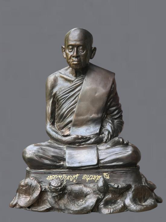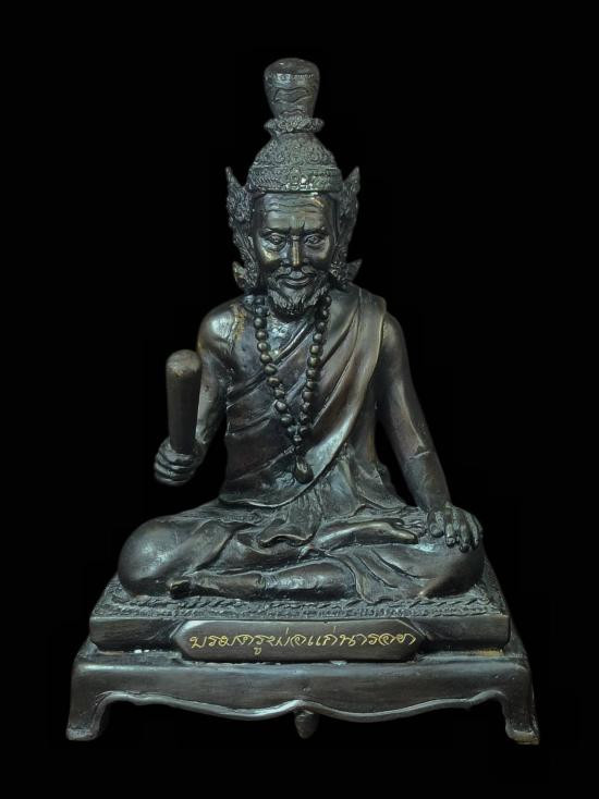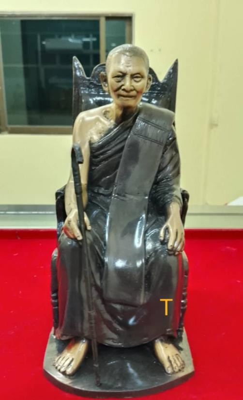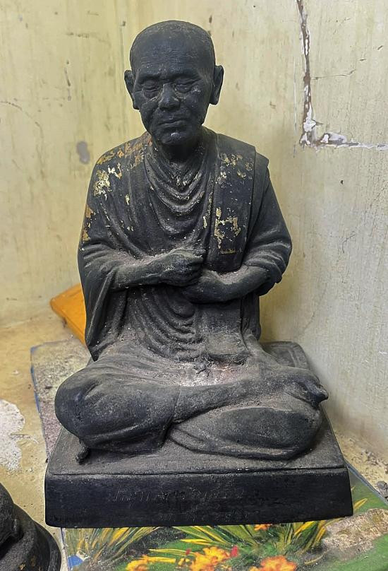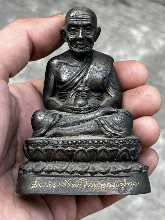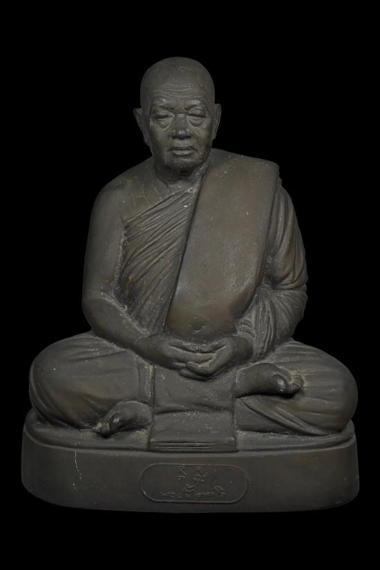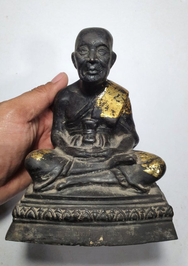 พระบูชาหลวงปู่ทิม วัดระหารไร่ ปี 2538 หน้าตัก 5 นิ้ว เนื้อทองเหลืองรมดำ ใต้ฐานฝังมวลสาร |