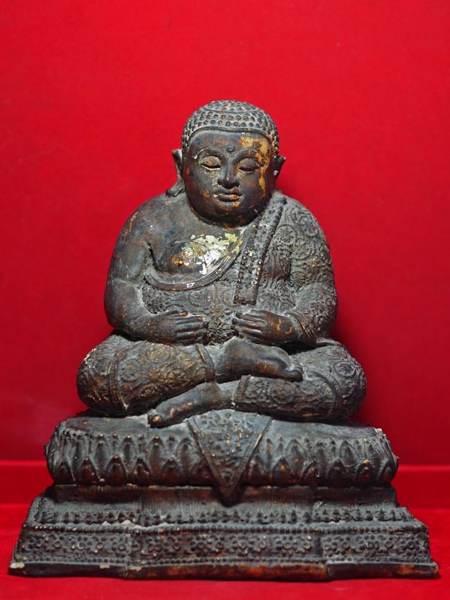 พระบูชาสมัยอยุธยา ทรงเทริดกษัตริย์ พิมพ์มีสังฆาฏิ เนื้อสำริด จ.อยุธยา |