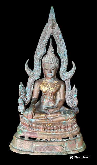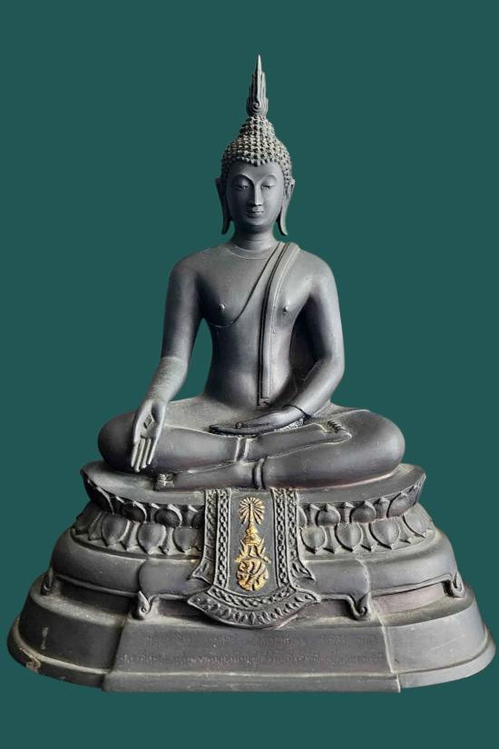 พระพุทธชินเรศนวราชบพิตร (นามพระราชทานจากสมเด็จพระนางเจ้าฯ พระบรมราชินีนาถ) พระประธานประจำอุโบสถวัดพระธาตุสุโทนมงคลคีรีฯ จังหวัดแพร่ ตั้งหน้ารถ หายากมาก |