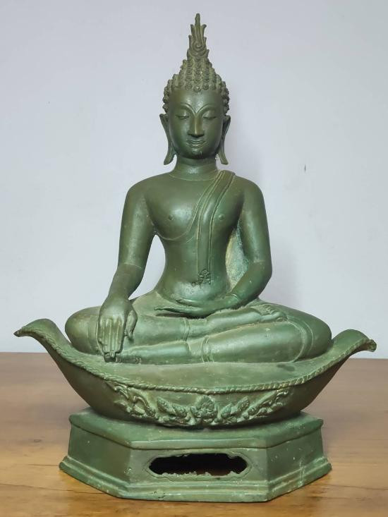 พระบูชานั่งสำเภา ขนาดหน้าตัก 8.5 นิ้ว สำเภากว้าง 12 นิ้ว ความสูง 15 นิ้ว เนื้ออมเขียวครับ |