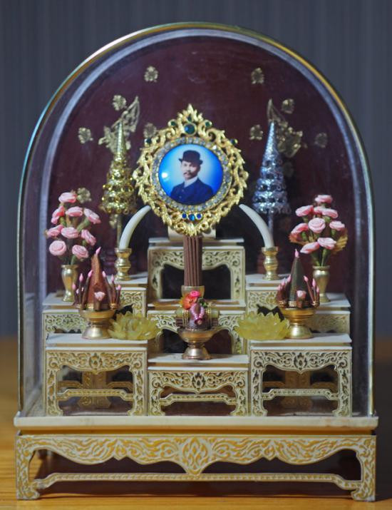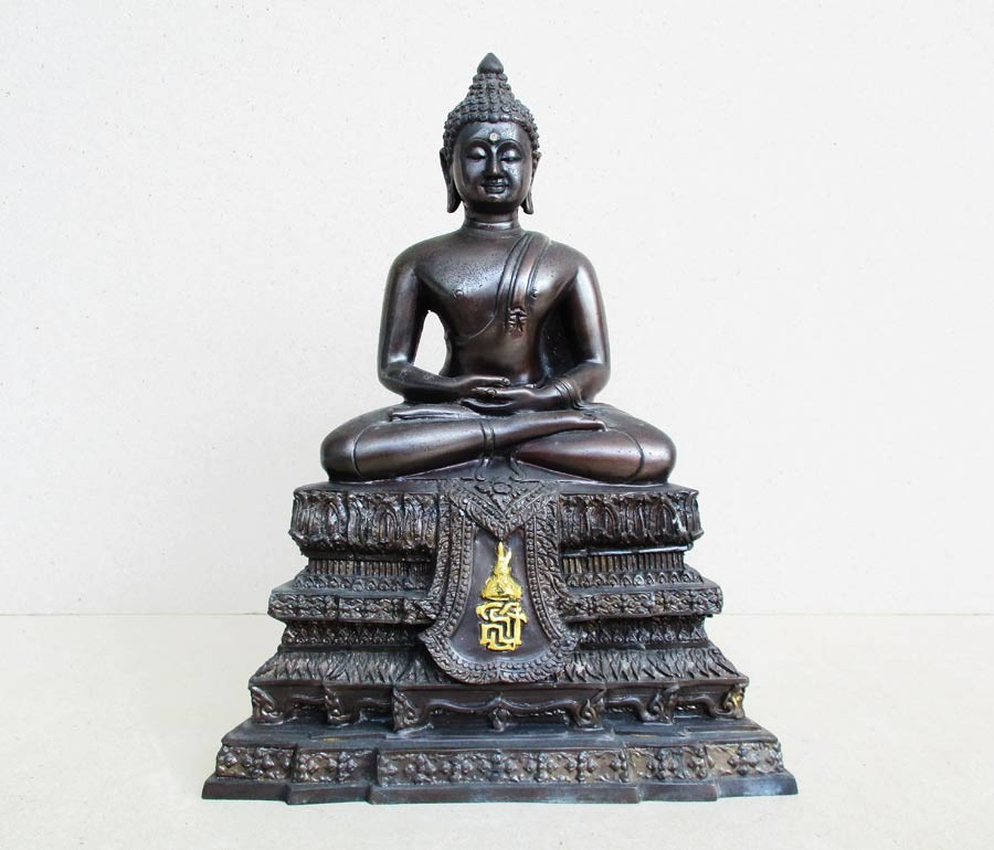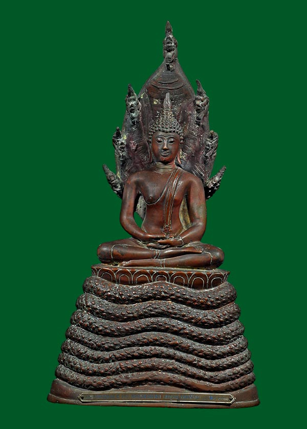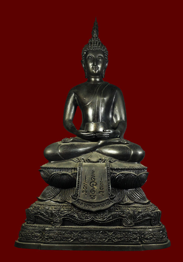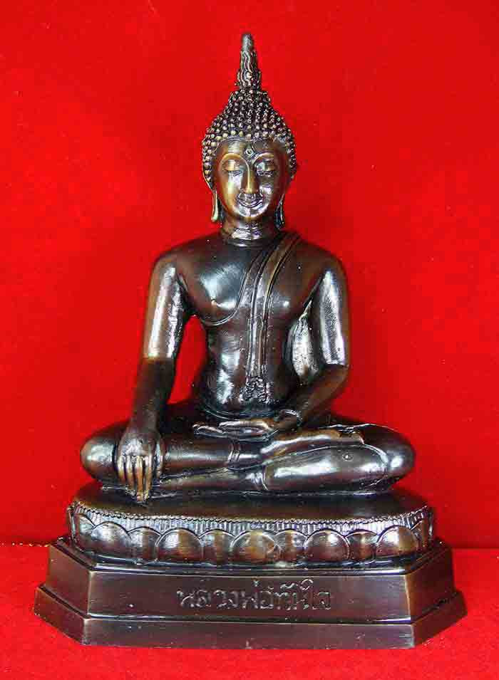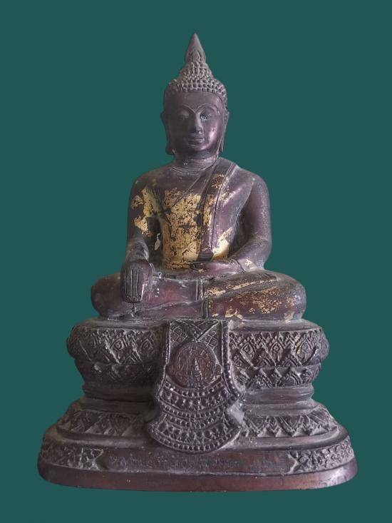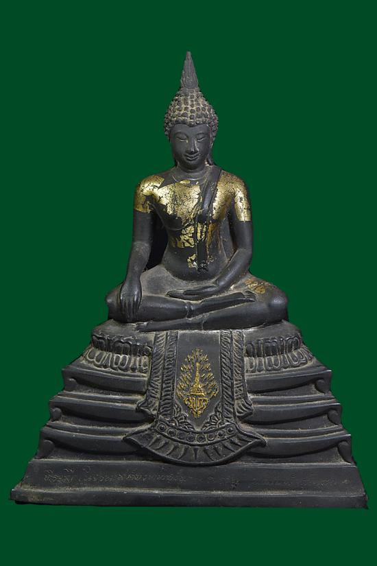 พระบูชาสมเด็จนางพญางิ้วดำ วัดใหม่บ้านดอน จ.นครราชสีมา ปี 2521 หน้าตัก 5 นิ้ว เนื้อโลหะ ผิวหิ้ง |