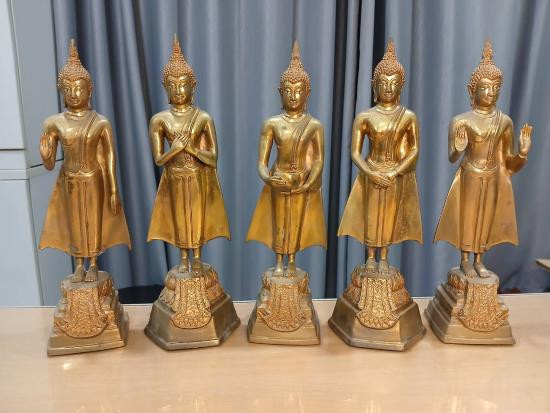 พระประจำวันชุดที่ 1 ปางยืนสูง 14 นิ้ว เนื้อทองเหลืองขัดมัน 5 องค์ สวยๆครับ |