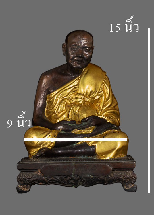 พระบูชาหลวงปู่ทวด รุ่น ร 9 ครองราชย์ 60 ปี ออกวัดเมืองยะลา จังหวัดยะลา ปี 2549 ขนาดหน้าตัก 3 นิ้ว ฐานกว้าง 4 นิ้ว สูง 4.5 นิ้ว |