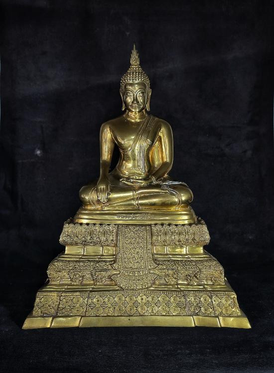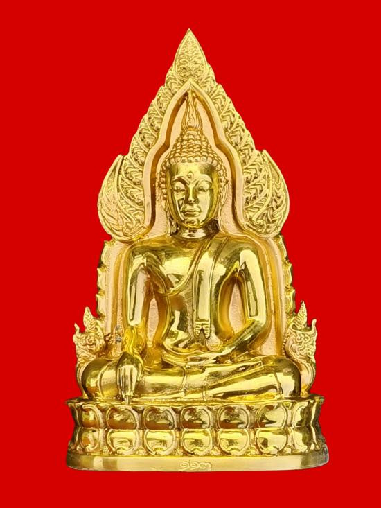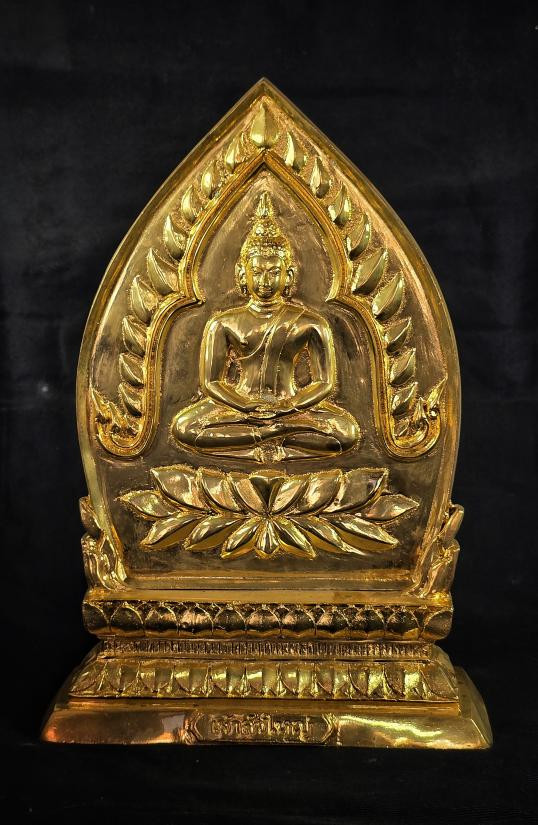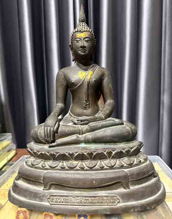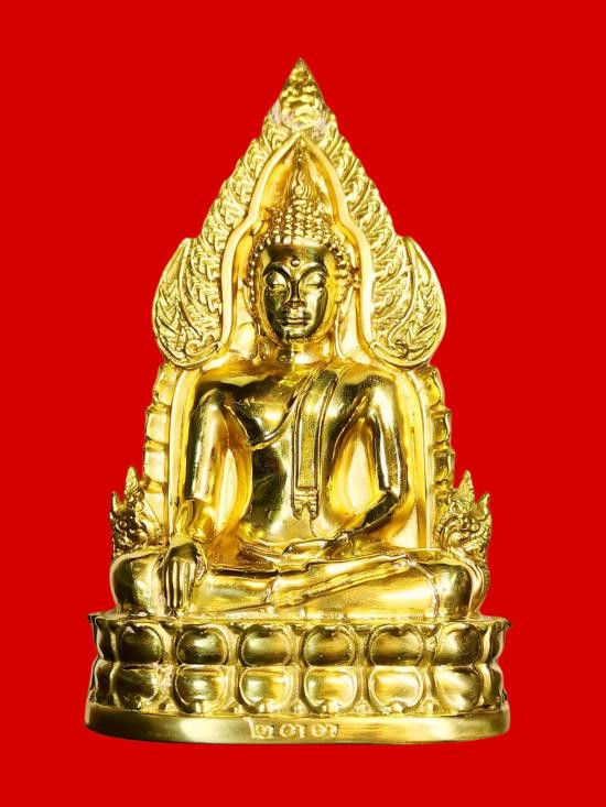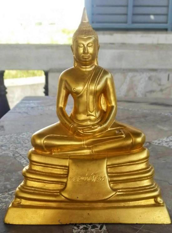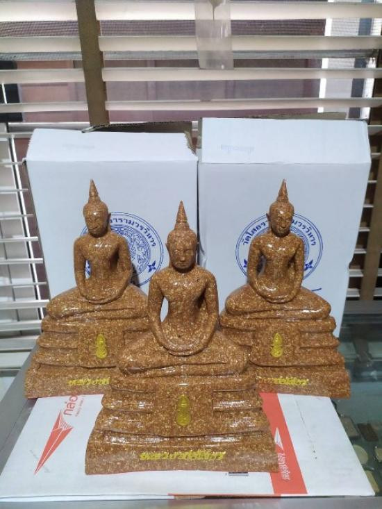พระบูชาหลวงพ่อสุโขทัยไตรมิตร วัดไตรมิตรวิทยารามวรวิหาร ปี 2516 เนื้อสามกษัตริย์ ขนาดหน้าตัก 5 นิ้ว ฐานกว้าง 7 นิ้ว สูงรวม 11 นิ้ว |
