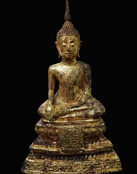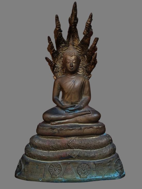 พระบูชา หน้าตัก 5 นิ้ว สมเด็จพระศรีเมืองทอง วัดต้นสน จ. อ่างทอง เนื้อทองเหลืองเก่า ซุ้มถอดได้ |