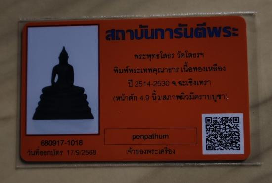 หลวงพ่อโสธร เนื้อทองเหลือง ขนาด 5 นิ้ว บล็อก 09 ออกปี14-30 ลายเซ็นพระเทพคุณาธาร + บัตรจี |