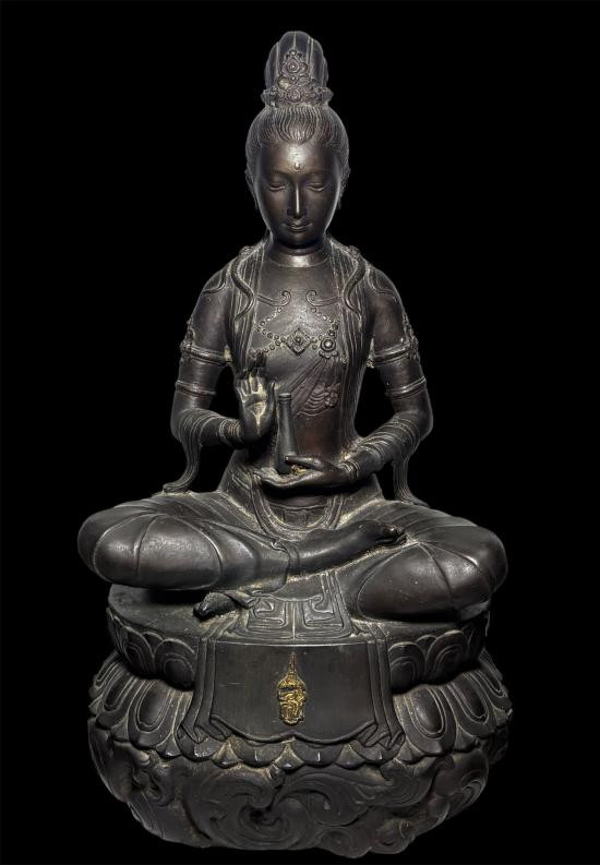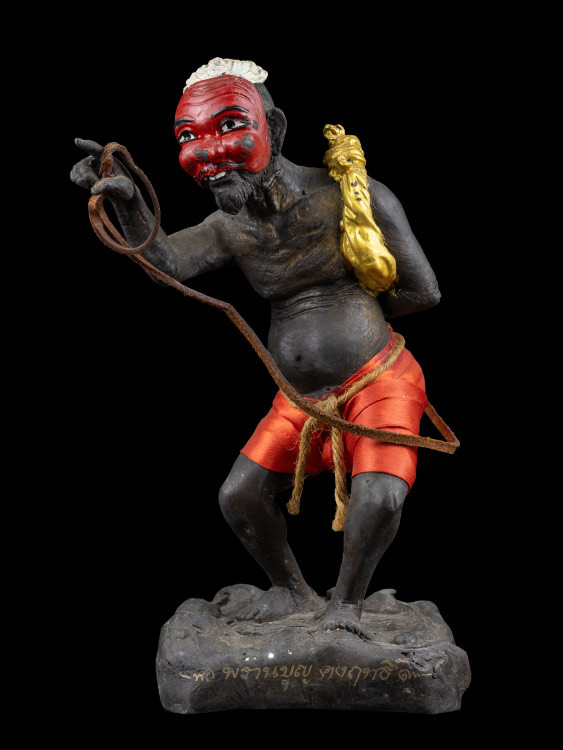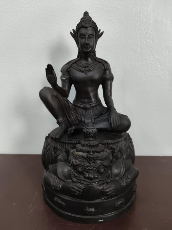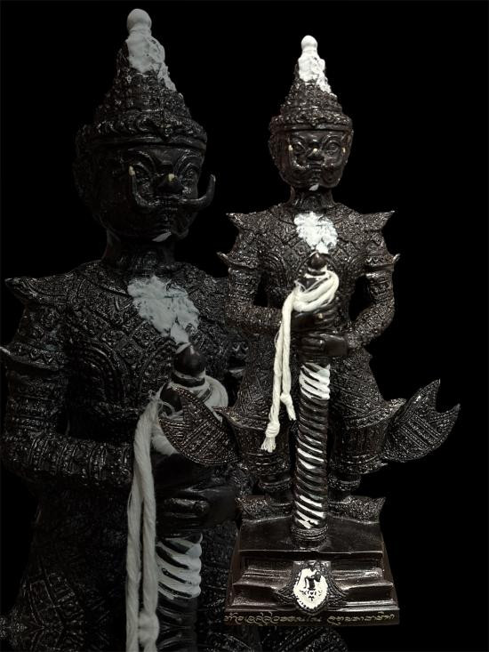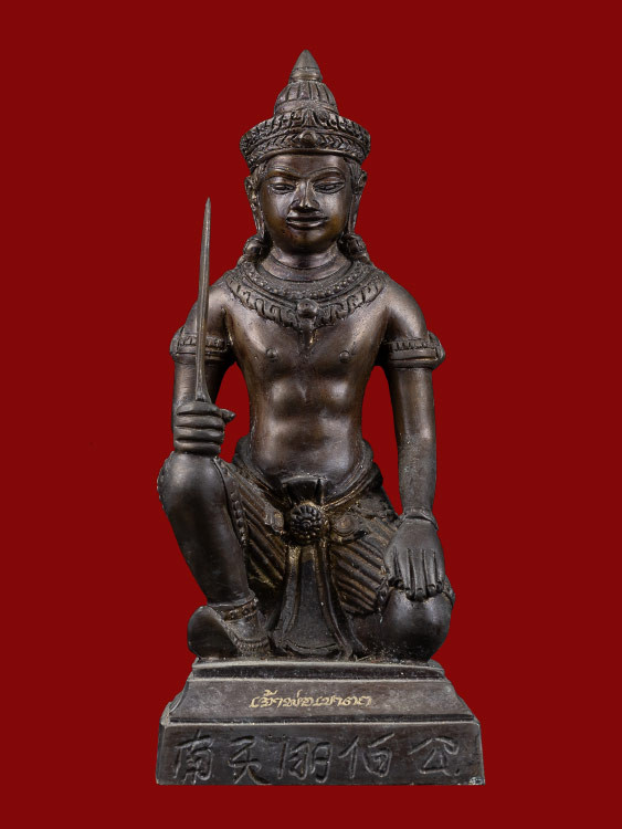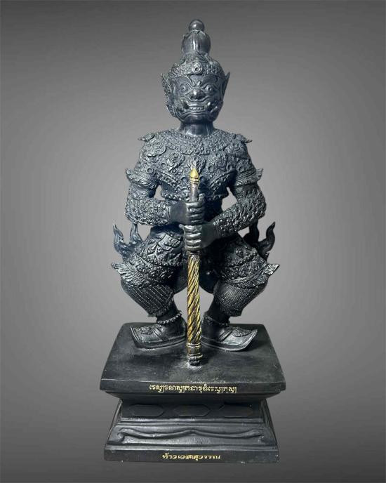 ท้าวเวสสุวรรณ รุ่นกระบองทอง วัดสุทัศนเทพวราราม พิธีเทวาภิเษก พ.ศ. 2565 เนื้อโลหะผสมรมดำ สูงรวมฐาน 16.2 นิ้ว |