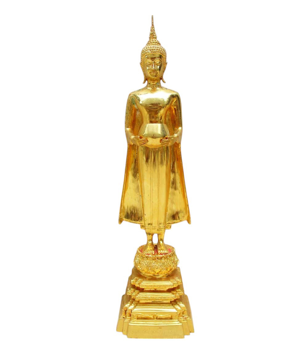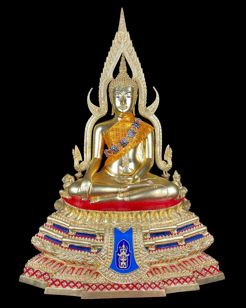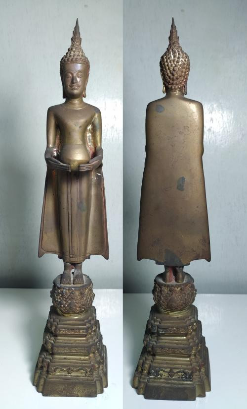 หลวงพ่อบ้านแหลม วัดเพชรสมุทรวรวิหาร จ.สมุทรสงคราม เนื้อโลหะก ระหลั่ยทอง ผิวแห้งหิ้ง บาตรถอดได้ สูงรวมฐาน 19.5 นิ้ว |