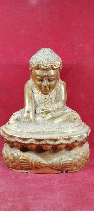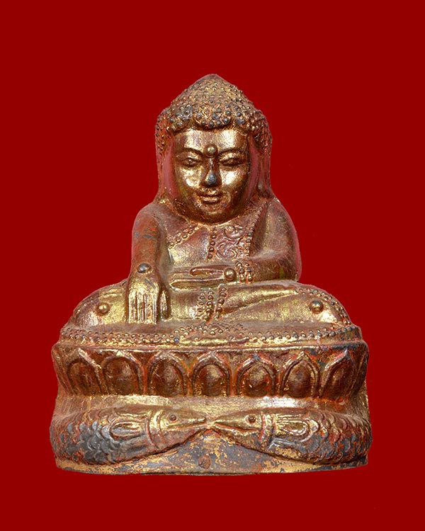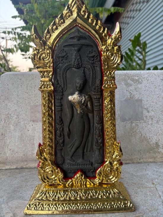 พระกำแพงศอก หลวงพ่อขอม ปางลีลา ศูนย์กลม ปี2505 พร้อมซุ้ม ปิดทองสวยๆ |