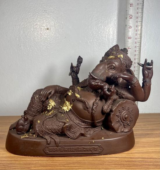 **เคาะแรกแดงที่ 800 บาท ** พระบูชา พระพิฆเนศเสวยสุข อุทยานพิฆเนศลุ่มแม่น้ำบางปะกง วัดสมานรัตนาราม ฉะเชิงเทรา เนื้อเรซิ่นผสมมวลสารเหล็กน้ำพี้ องค์ใหญ่ ฐาน 9 นิ้ว หมายเลข 33958 |