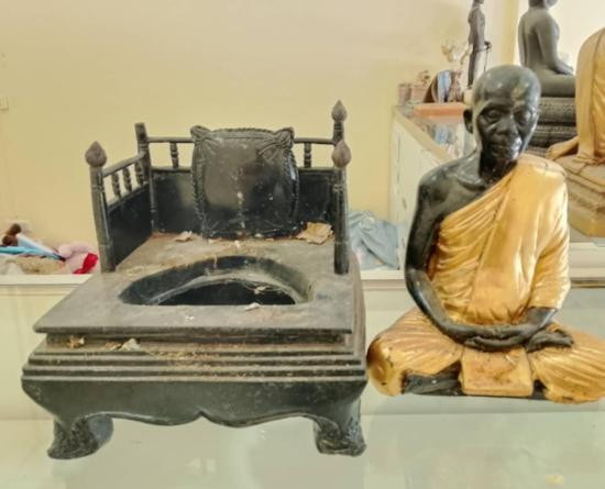 ท้าวกบิลพรหม หลวงพ่อแม้น วัดหน้าต่างนอก จ.อยุธยา พ.ศ.2565 เนื้อโลหะรมดำมันปู ฐานกว้าง 4 นิ้ว ตอกโค๊ต ตอกเลข อุดปูนฝังเหรียญพรหม !! |