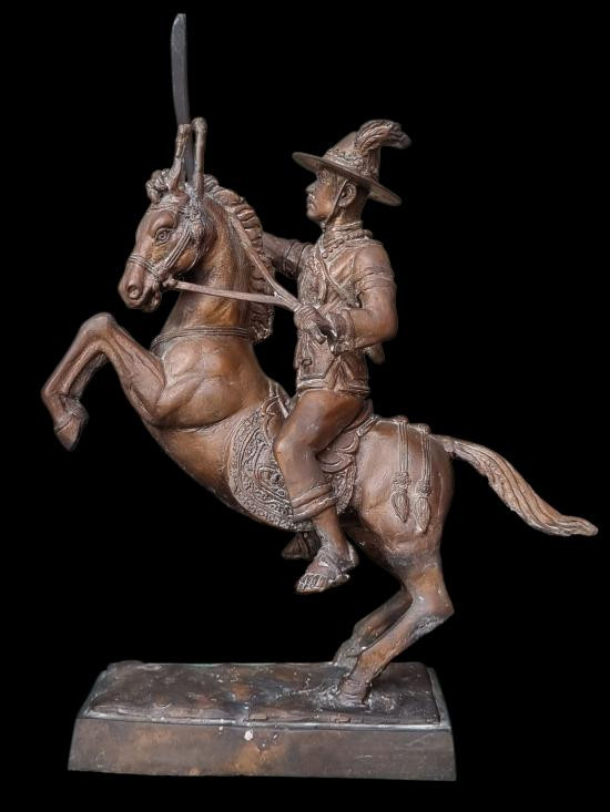 พระสยามเทวาธิราช เนื้อเรซินเคลือบทองแดง ดาบถอดได้ สูง 16 นิ้ว เก่า |