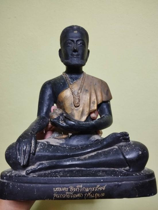 พระบูชาหลวงปู่ทวด5 นิ้วครึ่ง สูง 8 นิ้วจัดสร้างโดย หลวงปู่คำบุ วัดกุดชมภู เนื้อแร่เหล็กไหล |