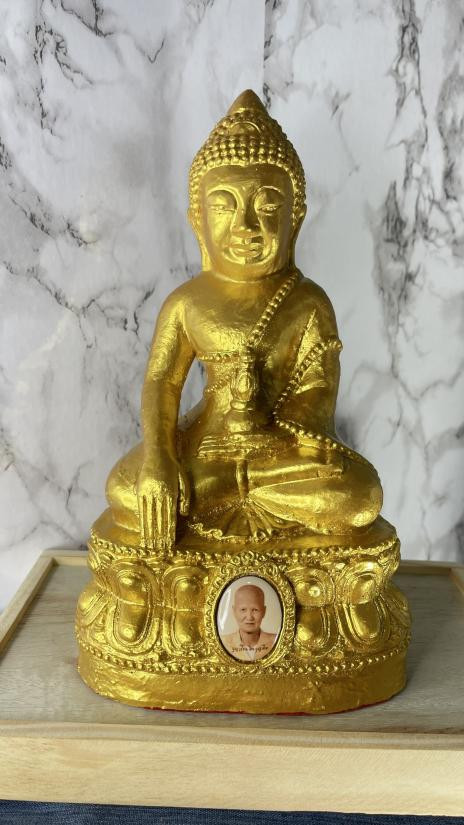 พระบูชา หลวงพ่อกวย วัดโฆสิตาราม รุ่นฉลองเรือนไทย ปี 2553 ขนาด 6 นิ้ว |