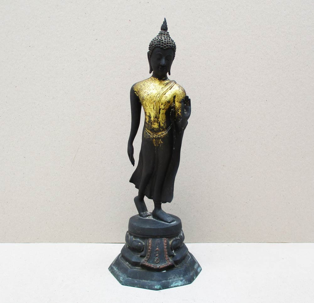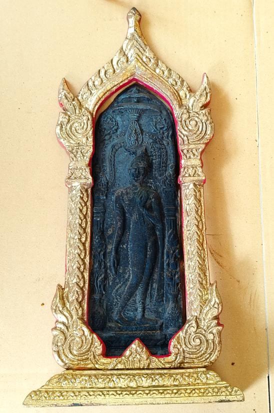 พระลีลาอัครปัญโญภาสปฎิมา วัดอินทรวิหาร บางขุนพรหม กรุงเทพฯ พ.ศ.2521 สูงรวมฐาน 13.7 นิ้ว เนื้อโลหะรมมันปู ผิวแห้งหิ้ง สภาพสวย เข้มขลัง !! |
