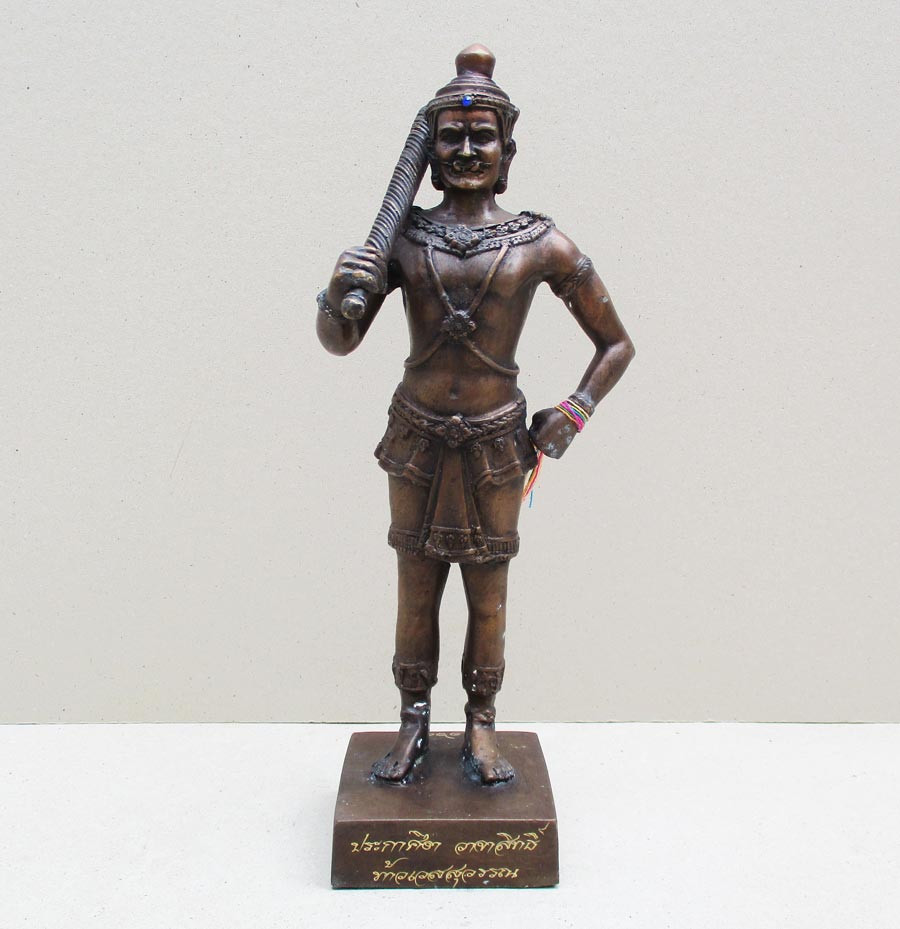 สมเด็จพระนเรศวรมหาราช ทรงประกาศอิสสระภาพ 400 ปี ( ยืนหลั่งน้ำสิโนทก ) ณ.วัดพรหมสุวรรณสามัคคี พ.ศ.2527 สูงรวมฐาน 12 นิ้ว เนื้อโลหะรมมันปู ผิวหิ้ง 2 ถอด !! |